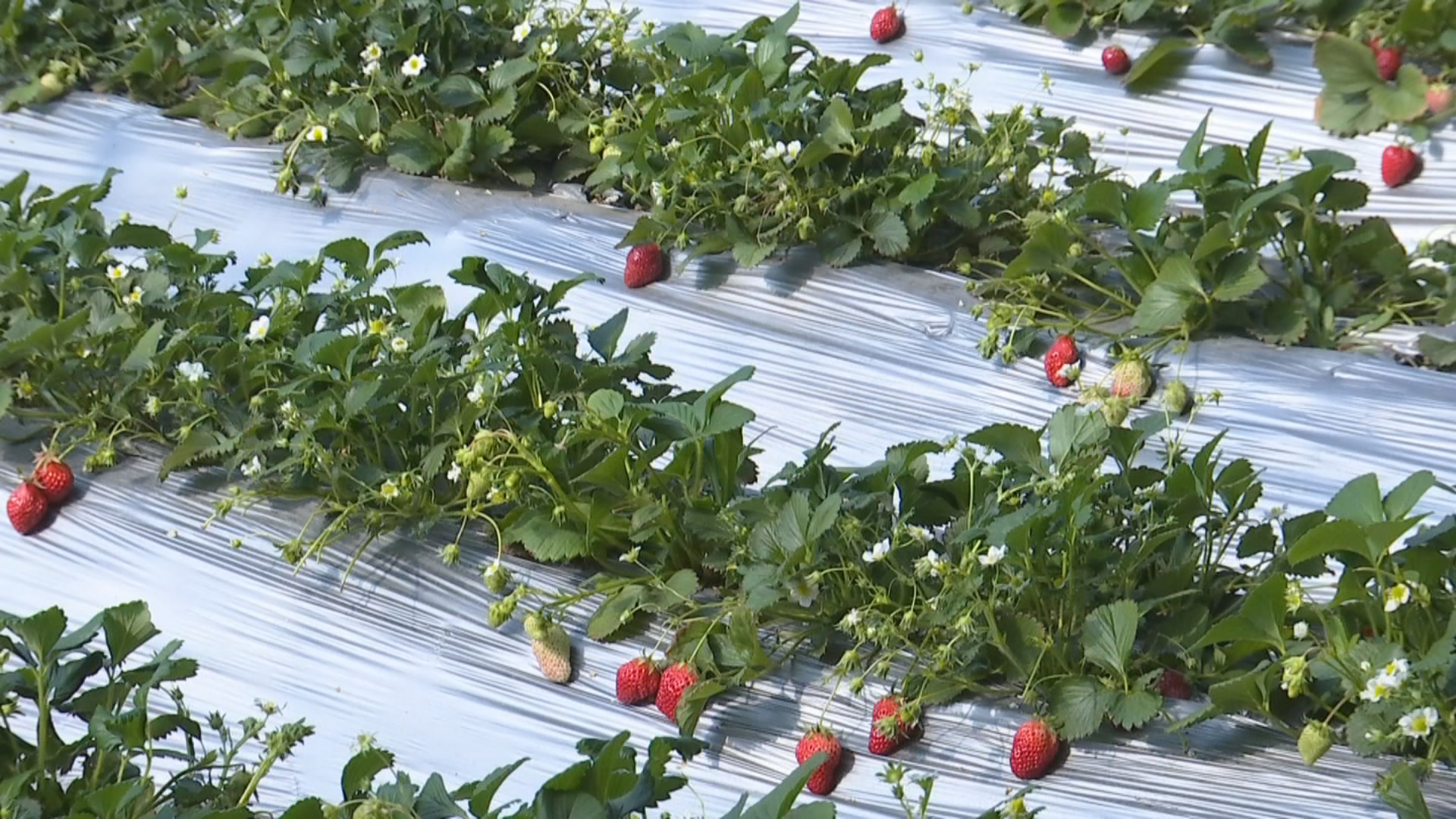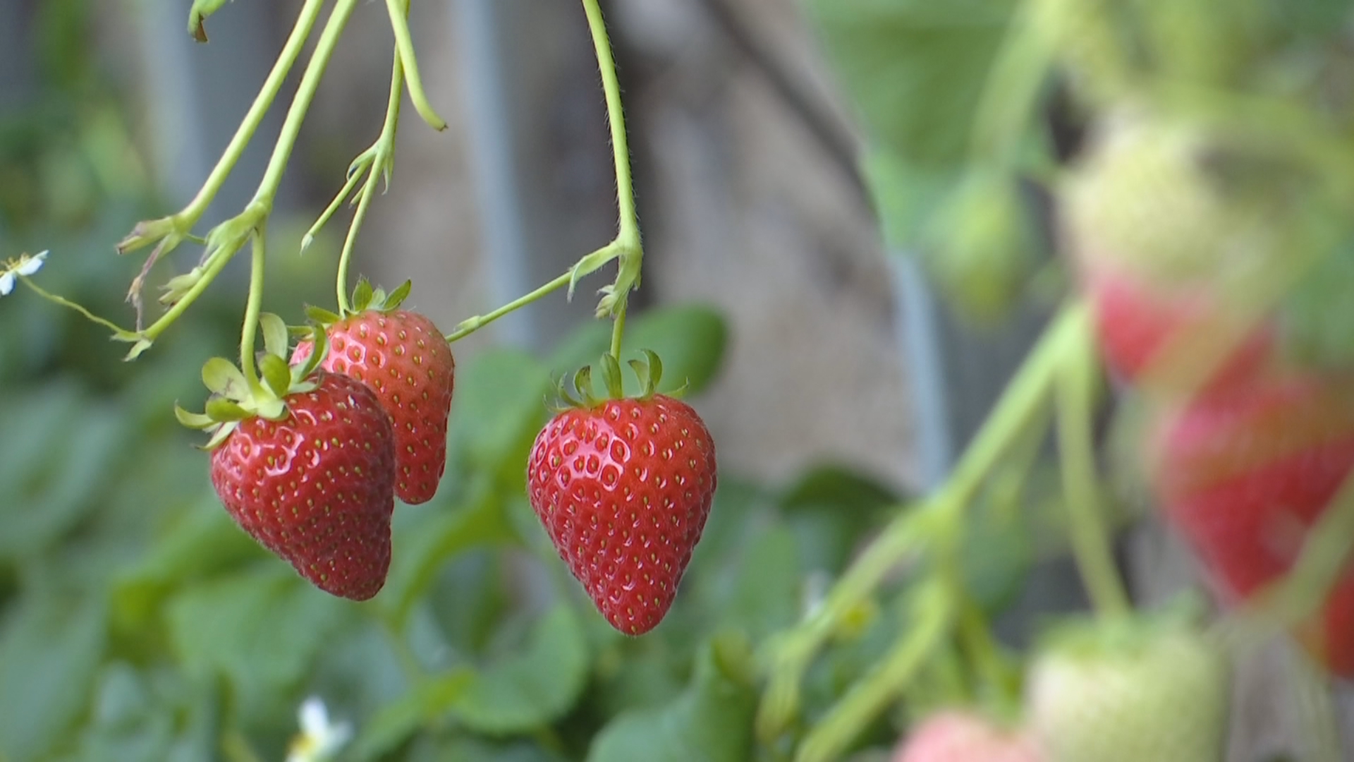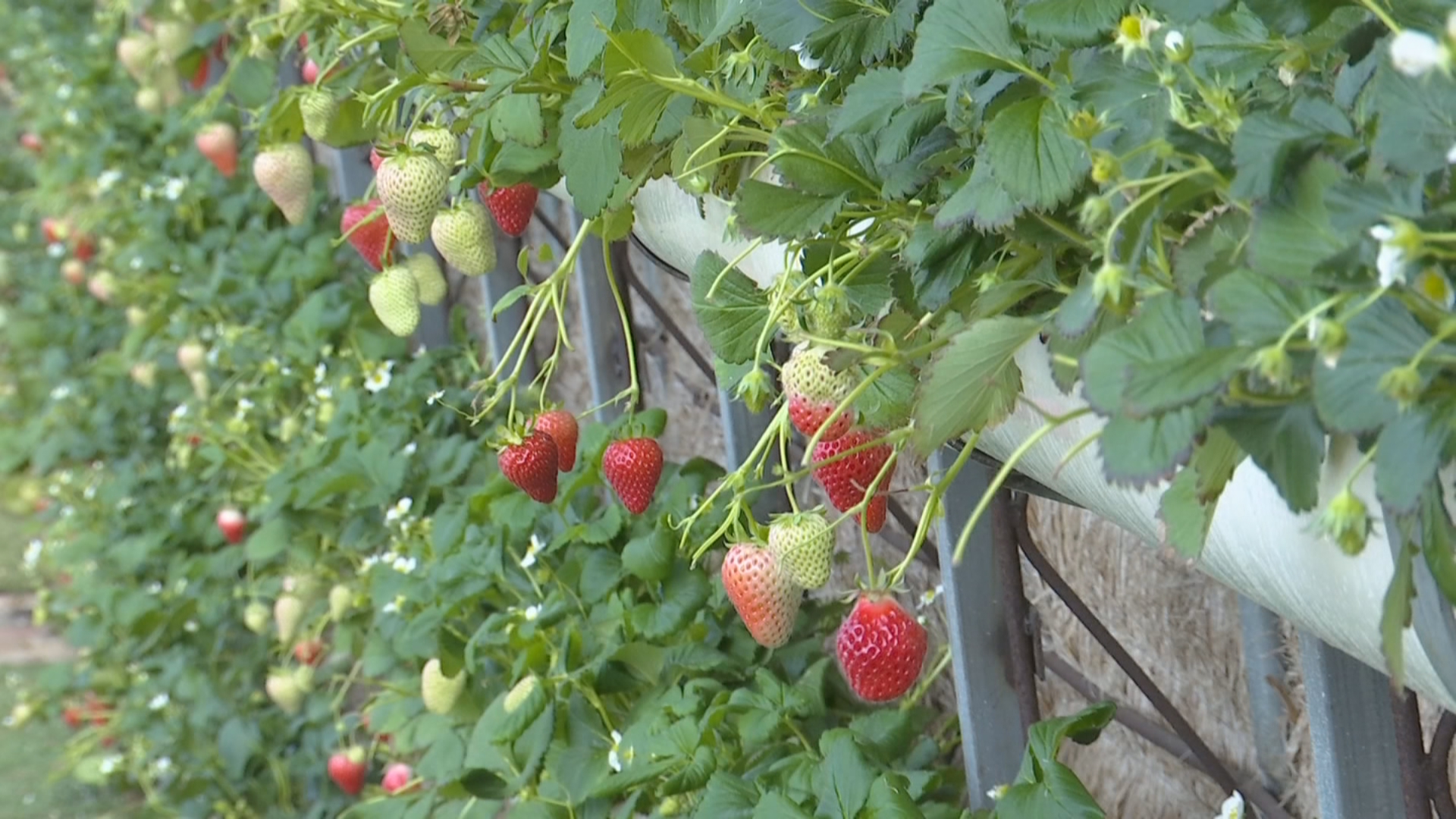 在大林农业生态园我们看到,这里的草莓长势良好,除了地栽草莓,还合理利用空间进行立体栽植。