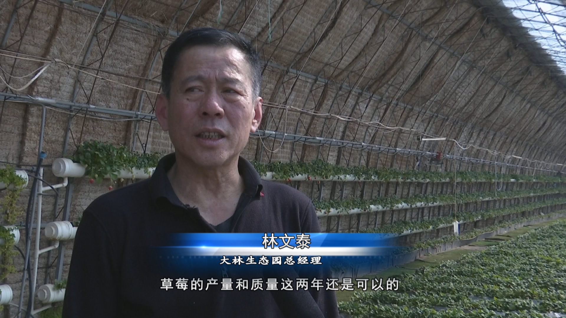 大林生态园总经理林文泰(草莓的产量和质量这两年还是可以的,今年引进一个新品种叫黑珍珠,是从山东寿光引进的,它的特点就是甜度高 莓香味足。)