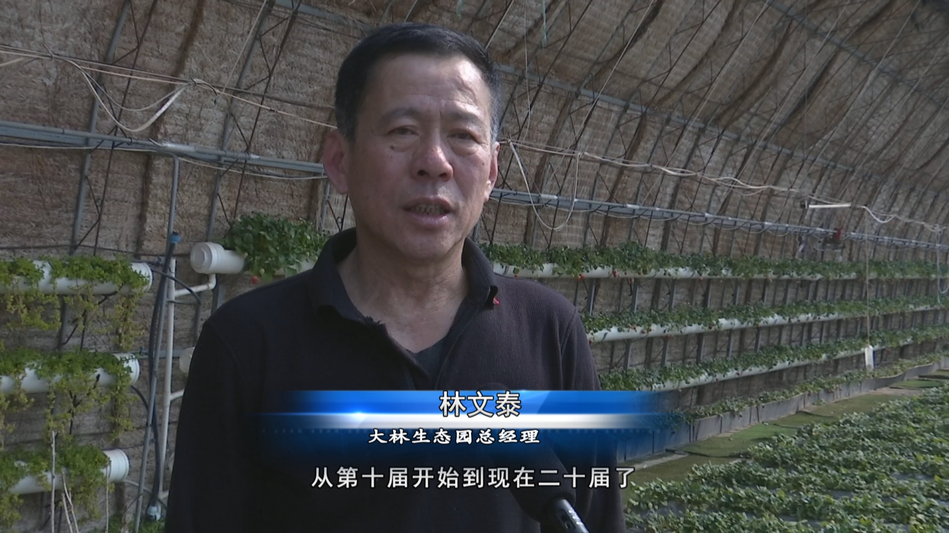大林生态园总经理林文泰(从第十届开始到现在二十届了,我们每年都要到全国各地参加中国草莓擂台赛, 咱每年草莓去了都会拿到金奖和银奖,对咱们大连金州区也是有一定的知名度,对咱们园区也提高了很多的知名度。)