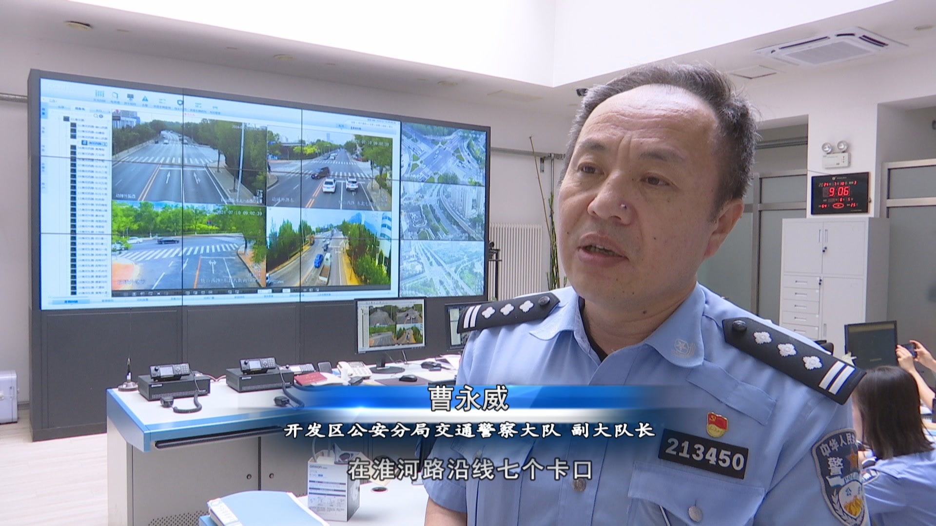 开发区公安分局交警大队副大队长曹永威(在淮河路沿线七个卡口,采取了各岗勤中队包干的方式,定点全时值守,每天从早晨6点到晚上9点左右,大约每天要值守15个小时左右,就在淮河路沿线出动警将近二十多人。)