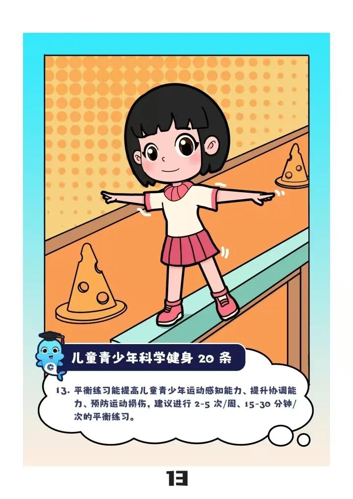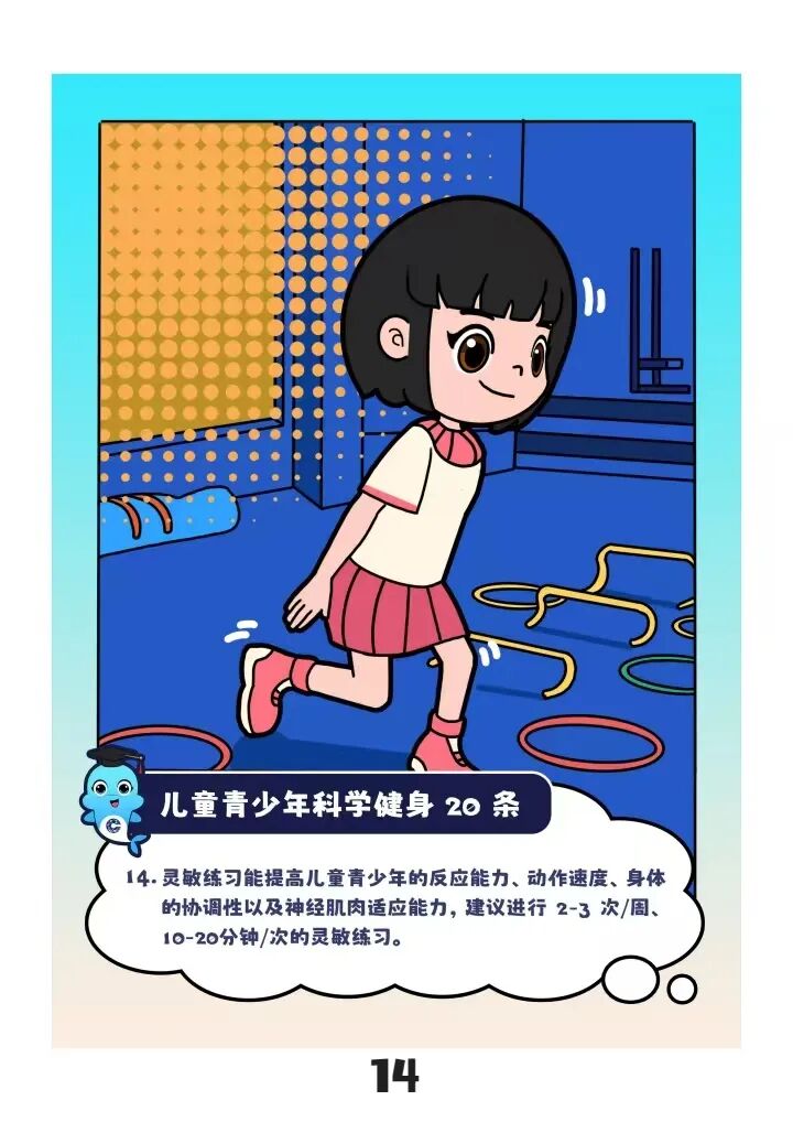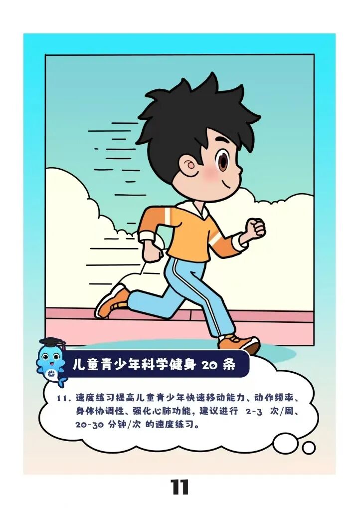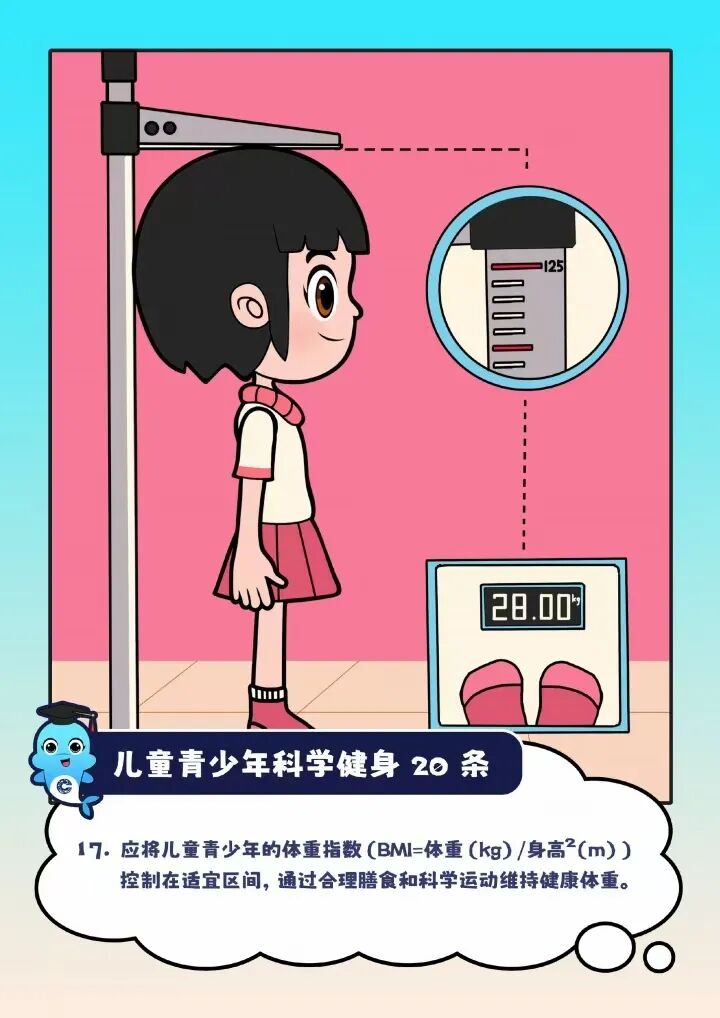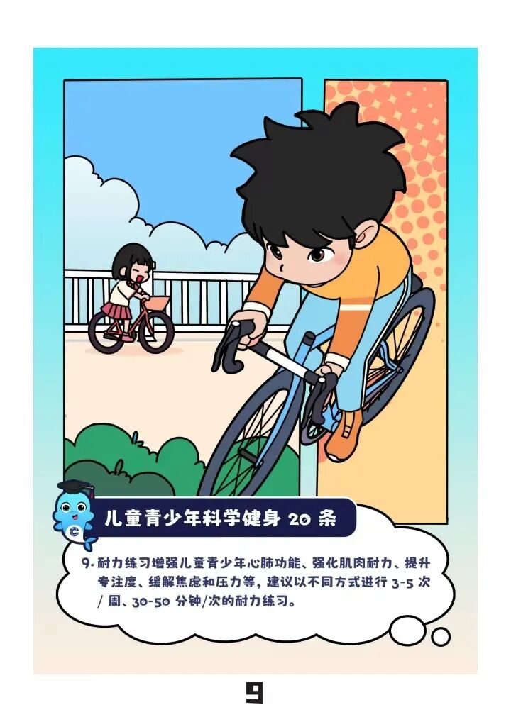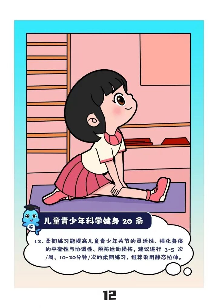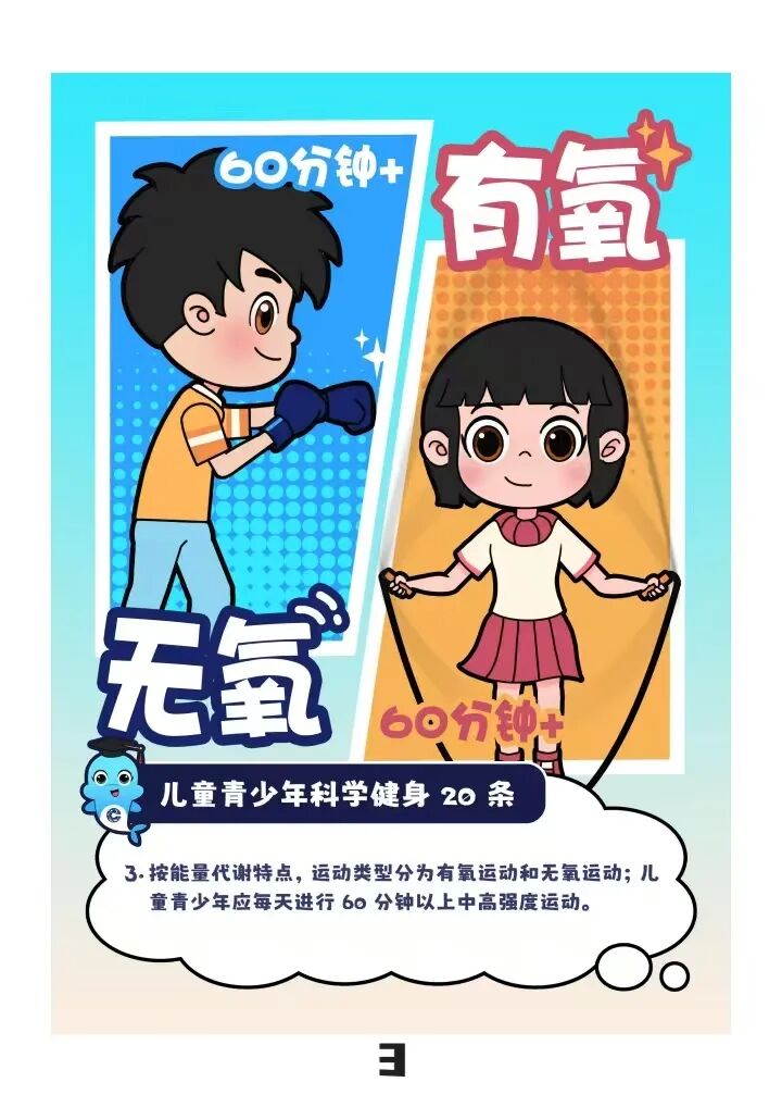 “儿童青少年应每天进行60分钟以上中高强度运动”“建议以不同方式进行3—5次/周、30—50分钟/次的耐力练习”……近日,“儿童青少年科学健身20条”(以下简称“20条”)由国家体育总局颁布实施,为广大青少年科学锻炼提供了参考指标。