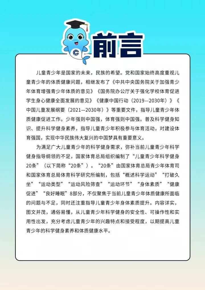 “儿童青少年科学健身20条”手册