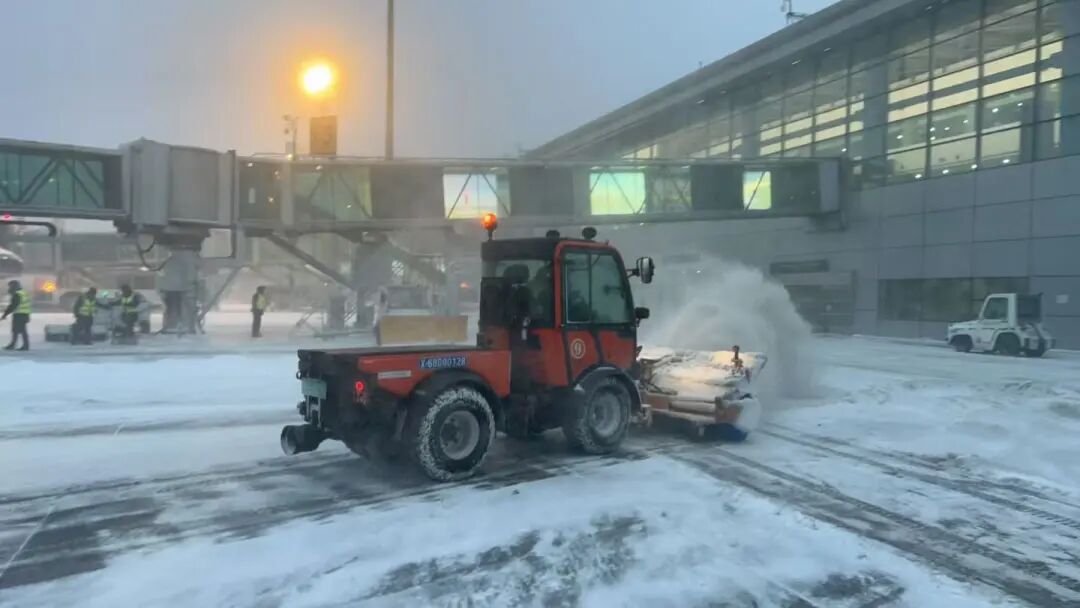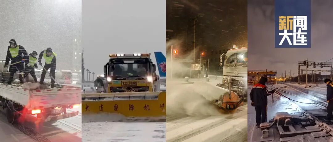 大连机场根据雪情特点,连夜出动吹雪车,三合一除雪车,除冰液洒布车对跑道、滑行道、各联络道进行不间断除雪作业,同时对停机坪、场区核心道路洒布除冰液、开展除雪。
