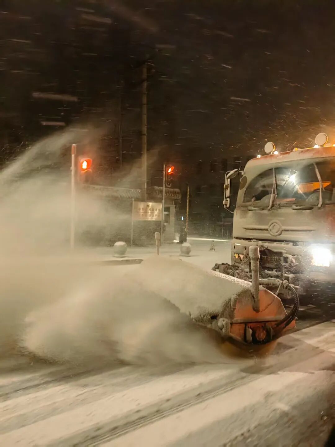截至目前,全市共出动除雪人员8685人、动用除雪装备942台次、使用融雪剂3466吨、各类除雪工具8000余件。全市快速路、主次道路、桥梁、重点路街、坡弯路全部打通,部分人行步道清理干净,交通道路安全顺畅。