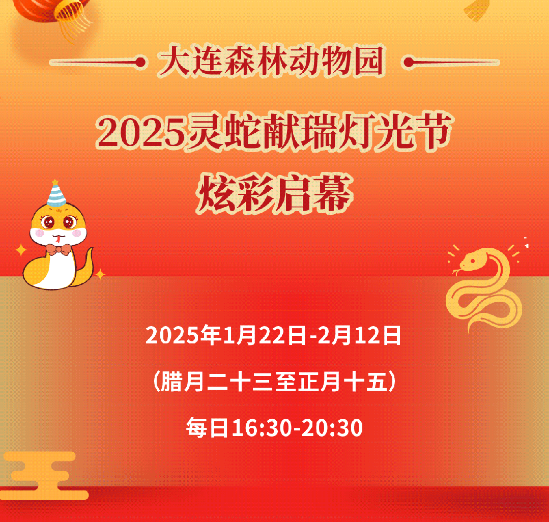 大连森林动物园2025灵蛇献瑞灯光节,炫彩夜空,喜迎新春!