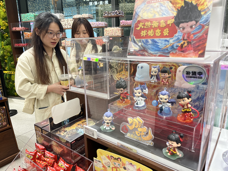 受益于《哪吒2》的出色表现,《哪吒2》周边产品销售热销。其中,泡泡玛特推出的《哪吒2》盲盒手办尤为火爆。