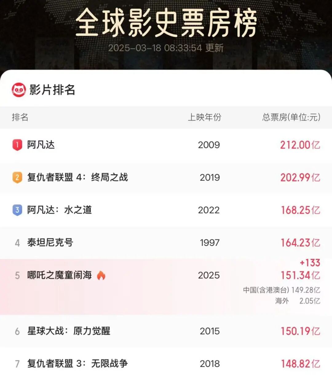 《哪吒之魔童闹海》全球票房(含预售及海外)