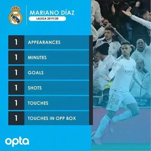 非要找一点存在感的话,马里亚诺在2019-20赛季的西班牙国家德比中,替补出场50秒即斩获进球,创下21世纪国家德比最快替补进球纪录,值得一提的是,他就此成为了近71年来首位在国家德比中代表皇马进球但生于巴塞罗那的球员。
