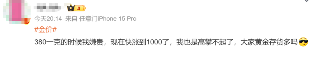 “现在的金价已经超出理解的范围了 。”