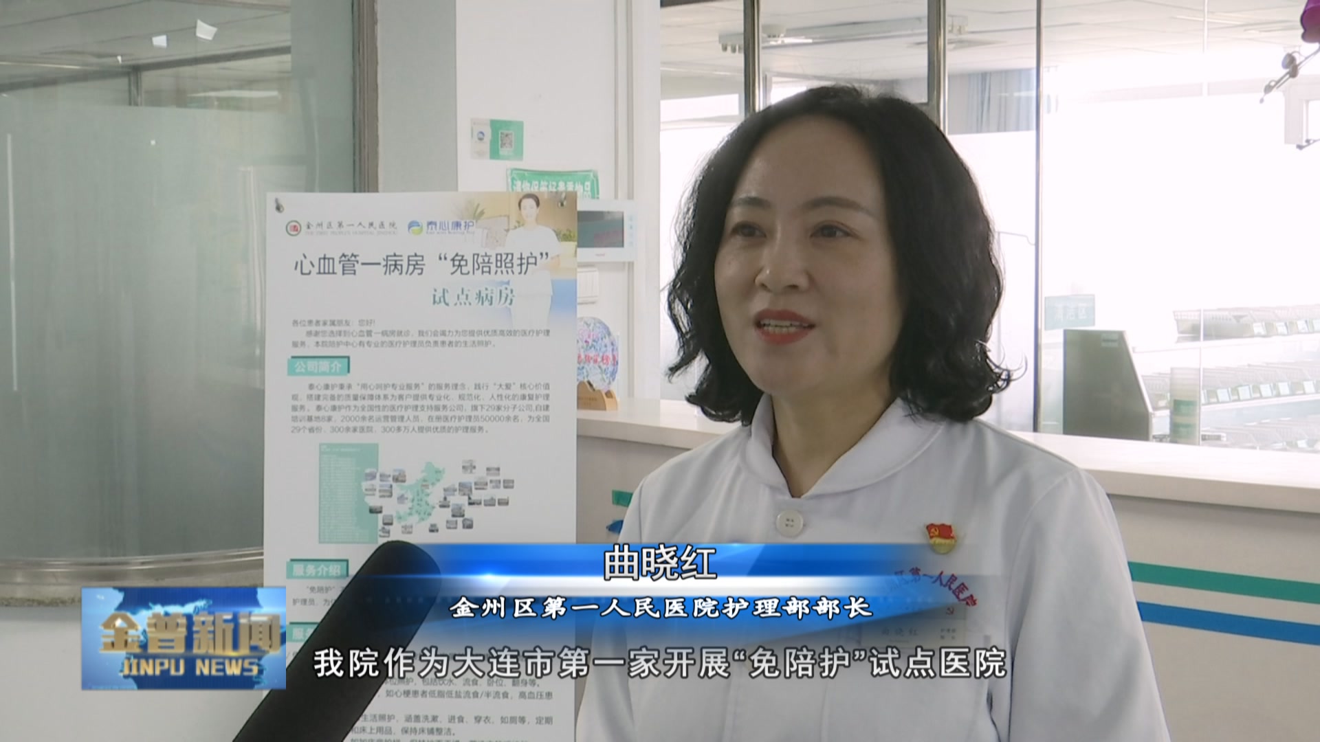 金州区第一人民医院护理部部长曲晓红(我院作为大连市第一家开展“免陪护”试点医院,通过专业的护理员为患者提供24小时,不间断的生活照顾,给患者提供更专业、更舒适、更安全的治疗环境。我院首先从心内病房开始试点工作,逐步扩大覆盖范围,将惠及更多的患者。)