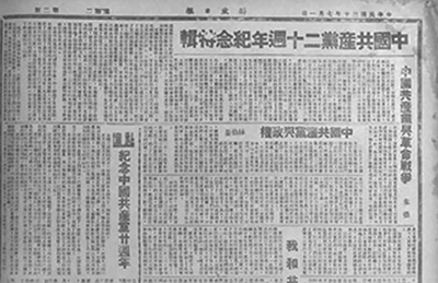 1941年7月1日,《解放日报》编辑出版了《中国共产党二十周年纪念特辑》。