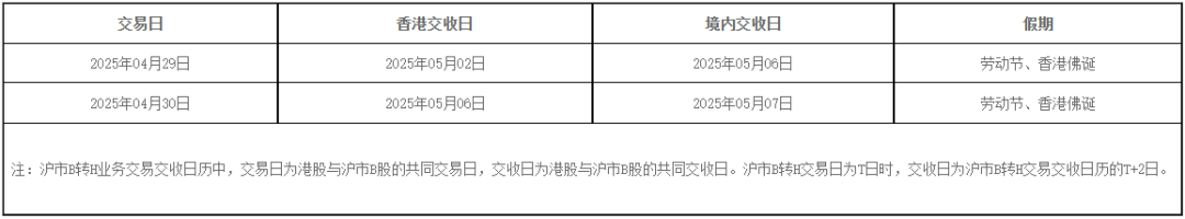 七、2025年劳动节期间上海市场B转H业务交收安排: