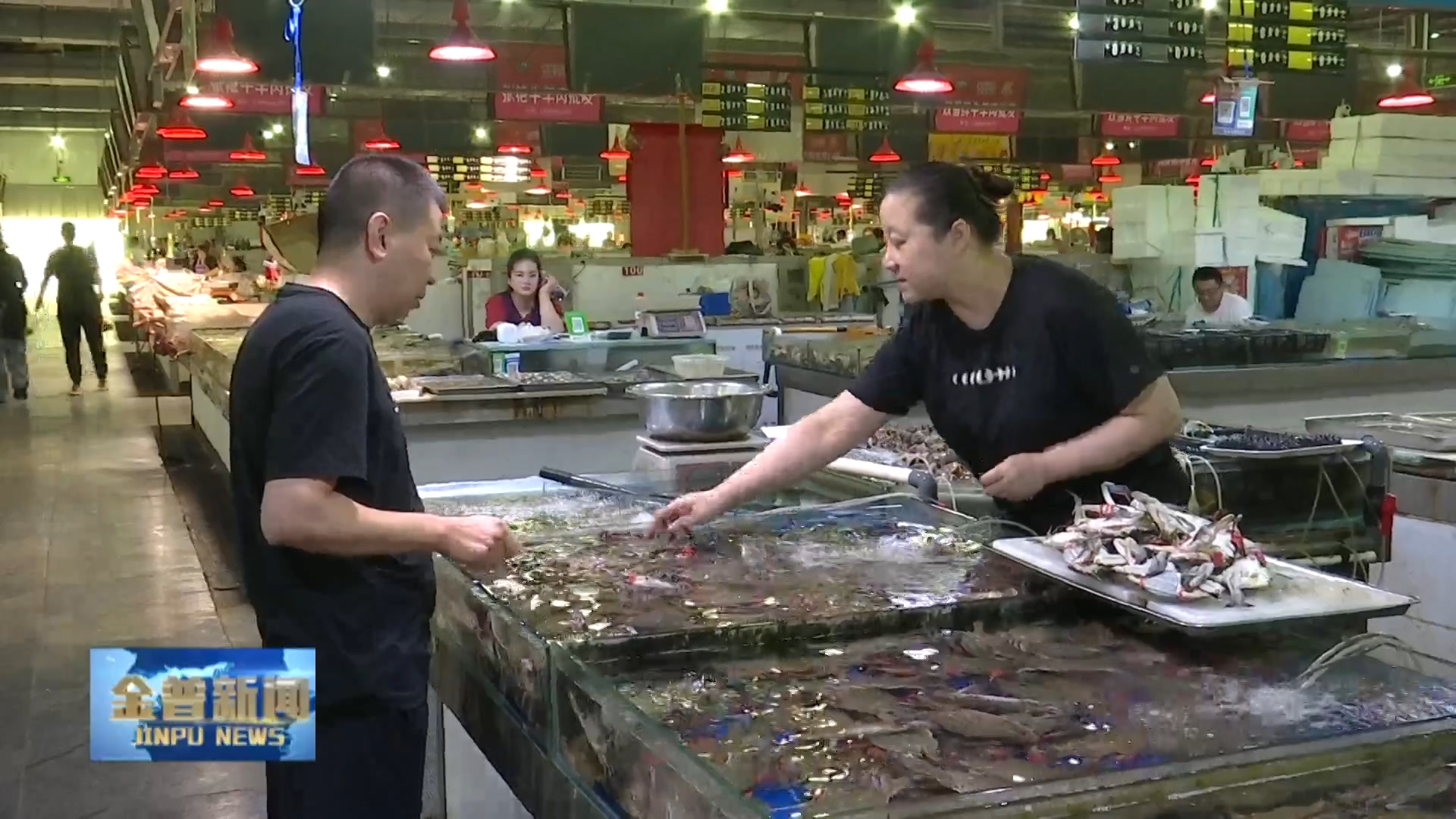 大连金发地市场管理有限公司管理员王云开(现在的活鲜基本都是本地的,像花盖、飞蟹、虾爬子都非常肥,都是东港跟杏树屯这边来的。咱们现在对海鲜的监管都是业户每天的进货台账,包括索证、上一级的经营资质,我们都会每天检查。)