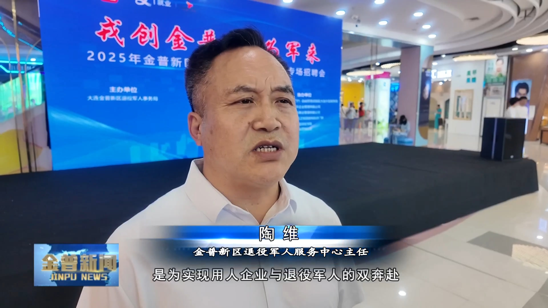 金普新区退役军人服务中心主任陶维(搭建这次招聘会平台,是为实现用人企业与退役军人的双奔赴。作为娘家人,我们一直用心致力于退役军人就业渠道,提升就业质量,希望脱下军装的好男儿们,在新的岗位上再创佳绩。)