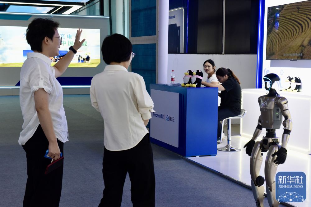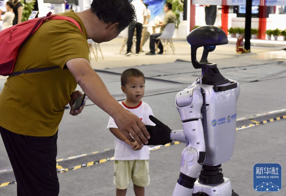 ↑ 9月7日,观众与中国移动灵犀机器人互动。新华社发(王玉言 摄)