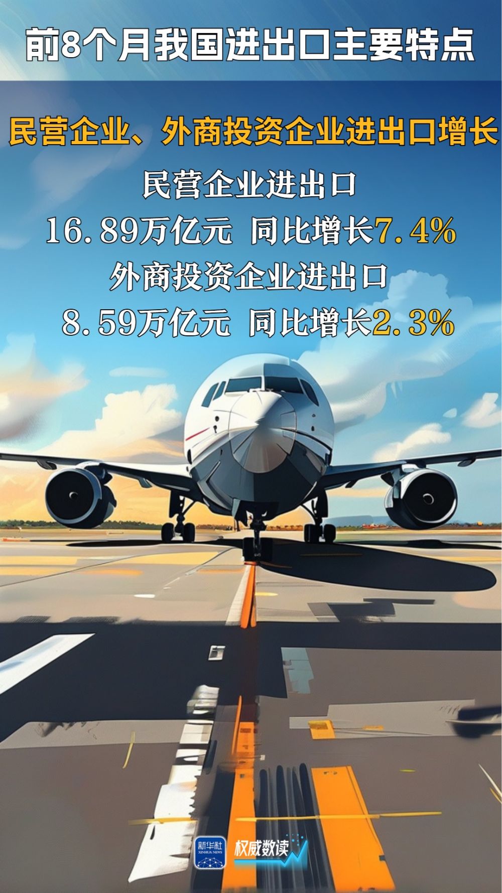 海关总署8日发布数据显示,今年前8个月,我国货物贸易延续平稳增长态势,进出口总值29.57万亿元人民币,同比增长3.5%。8月份,我国货物贸易进出口总值同比增长3.5%,出口、进口连续3个月实现双增长。