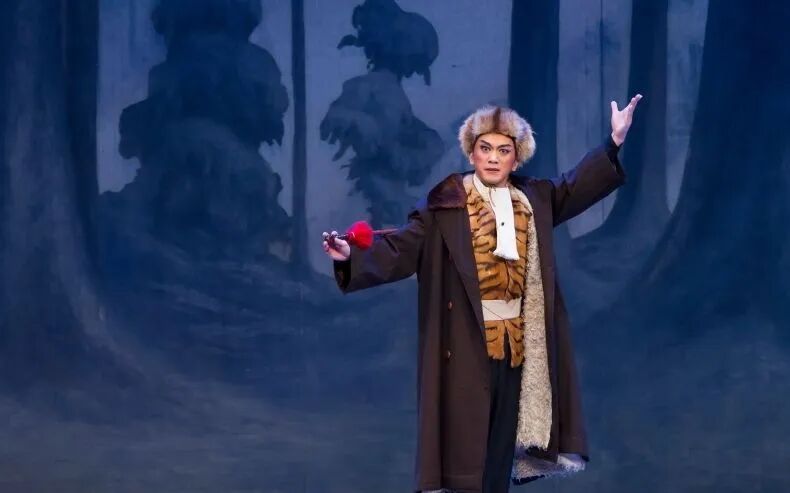 京剧舞台上,孤胆英雄杨子荣身着土匪皮袄,眼神坚毅而深邃。化名胡彪的他,“深潜”威虎山。面对座山雕等土匪头目的盘问和试探,杨子荣用黑话巧妙应对,既展现出自己的“匪气”,又成功地隐藏了真实身份,让敌人逐渐放下戒心。