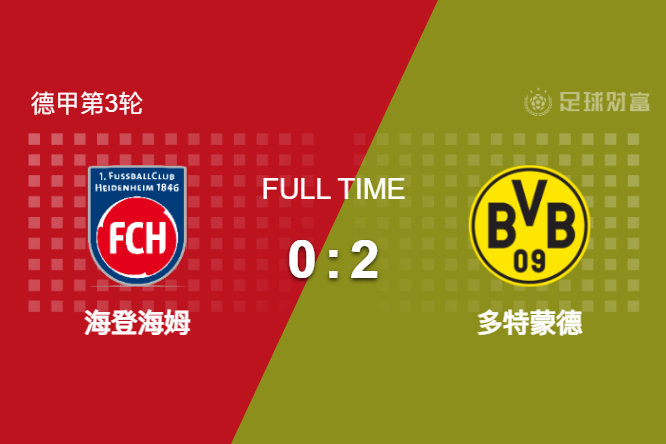 最终全场比赛结束,多特蒙德客场2-0轻取十人海登海姆。