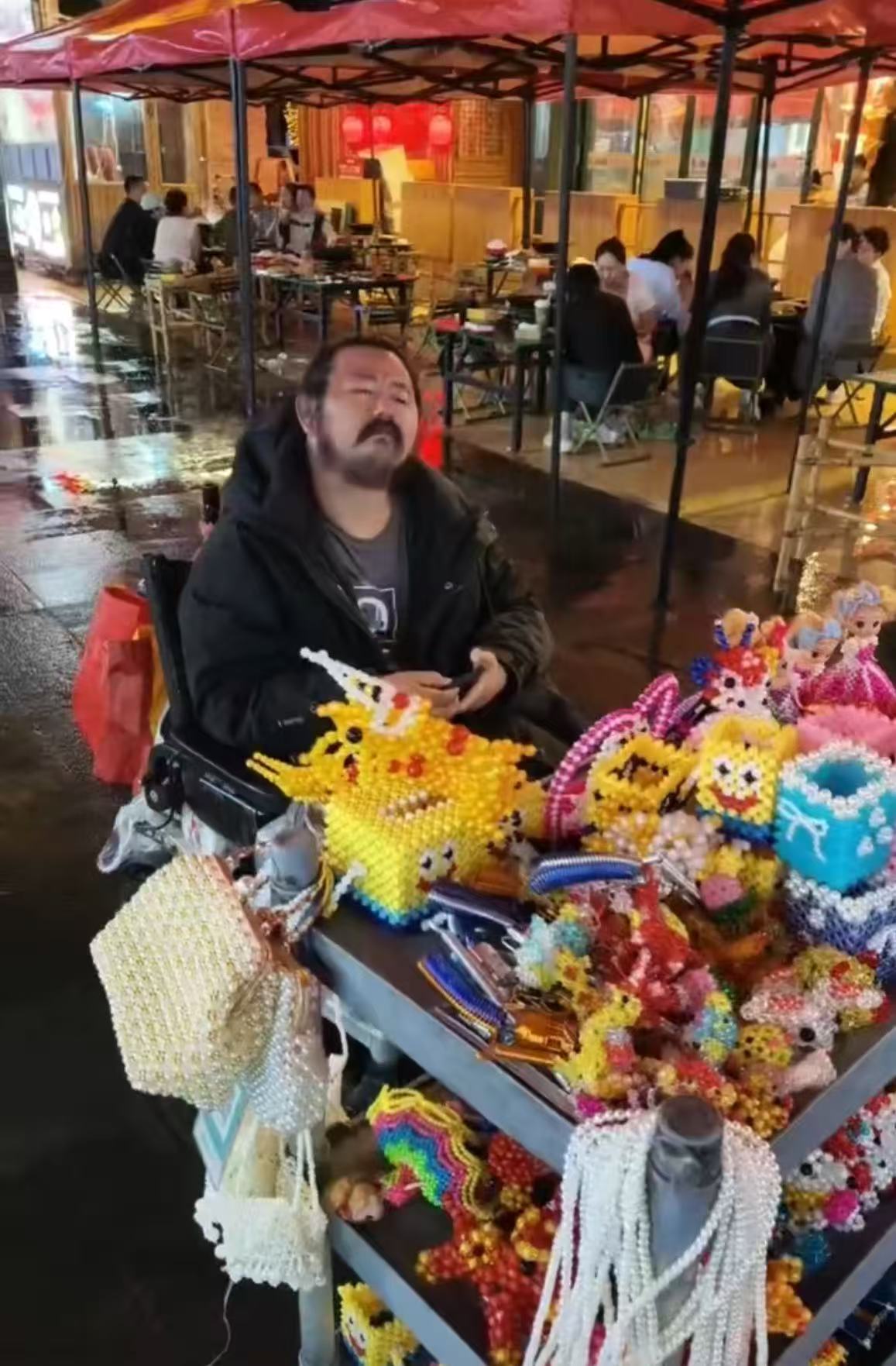 22日晚,胡雷在中卫摆摊,友人说其近日精神状态一直欠佳。 受访者供图