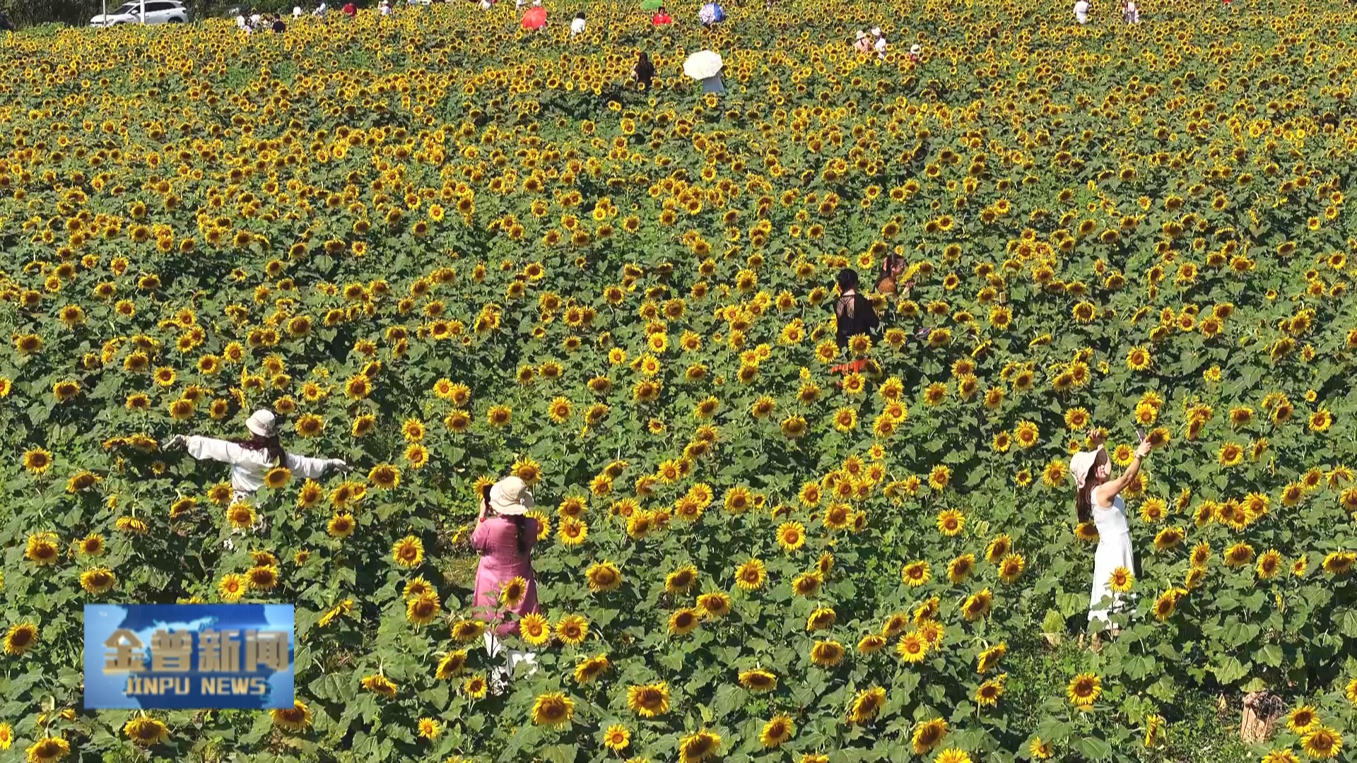 夏秋之交,天高云淡,在新区淮河东路和辽河东路交汇处、科技大厦正对面,40余亩向日葵正值盛放期,连片花海宛如金色浪潮铺展开来,迅速成为市民游客追捧的“网红打卡地”。