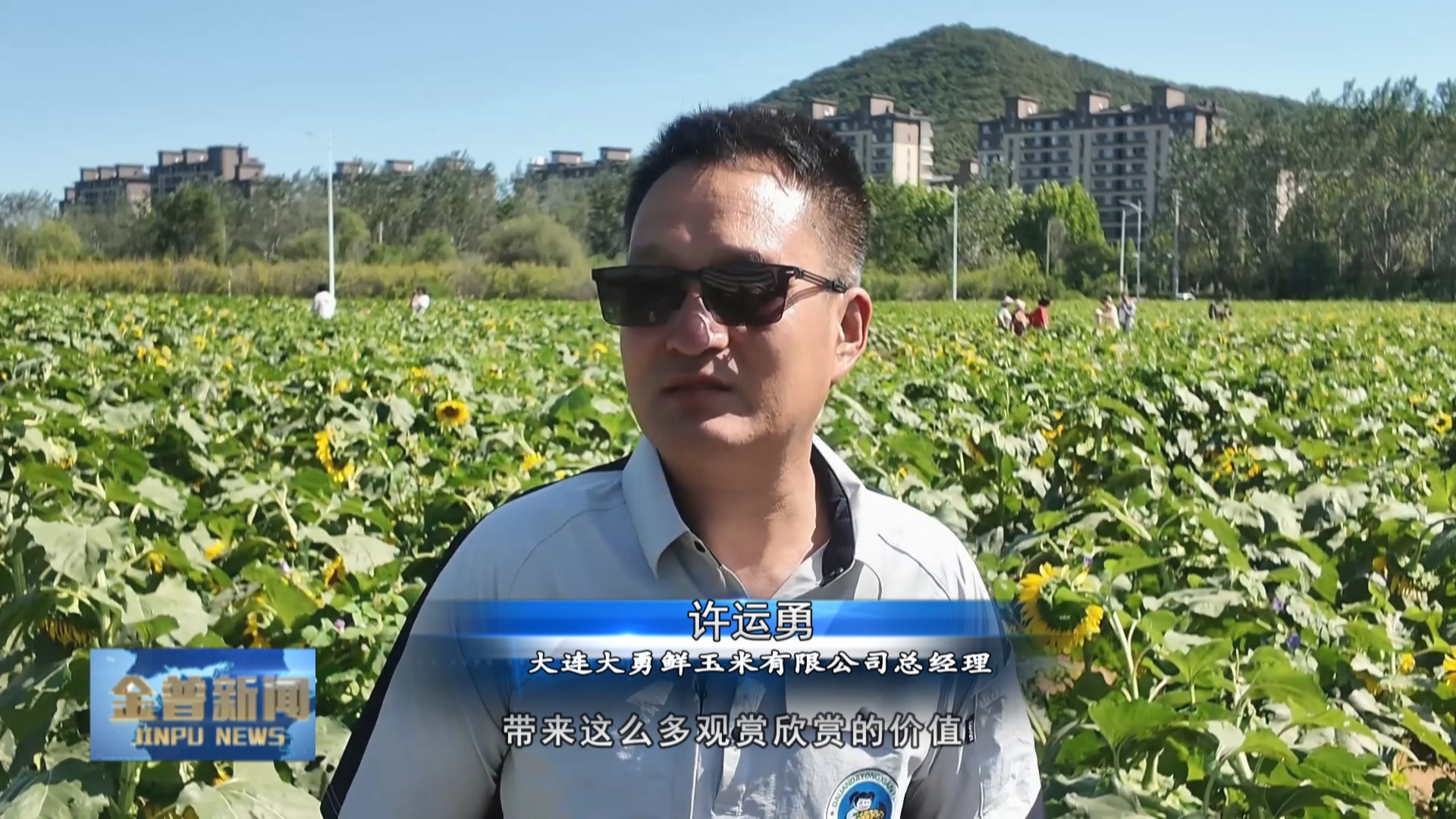 大连大勇鲜玉米有限公司总经理许运勇(给咱大连广大市民啊,带来这么多观赏欣赏的价值,明年我继续再搞下去,把这块地继续打造成一个最美的花海。)