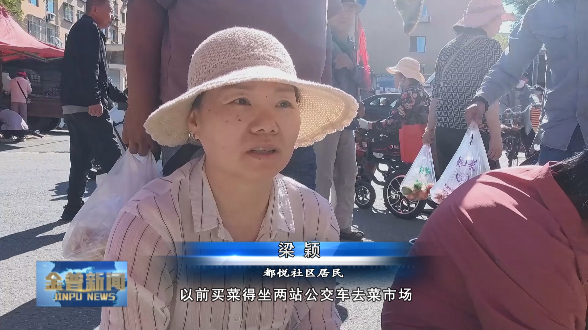 都悦社区居民梁颖(以前买菜得坐两站公交车去菜市场,提着菜回来累得慌。现在出了小区门走五分钟就到,特别便宜,而且菜还特别新鲜。)