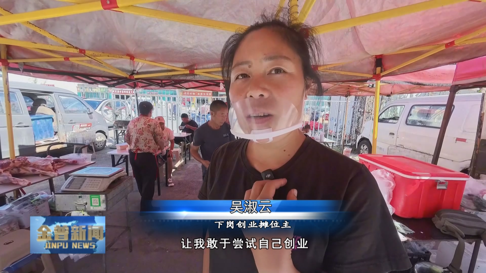 下岗创业摊位主吴淑云(每月租金只要800元,让我敢尝试创业。市场还帮我设计包装,现在每月能赚10000多元,比以前打工强。)