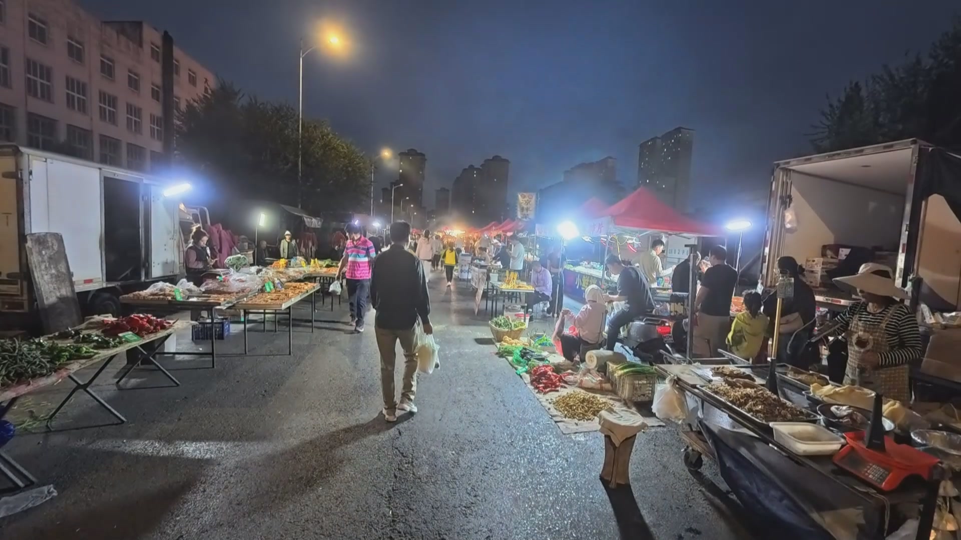 人气旺的大集还解锁了“夜模式”,成为社区夜晚最热闹的去处。当晚风拂过,夜市正式登场,尤其是新增的烧烤摊位,瞬间点燃了社区的夜活力。滋滋作响的肉串、香气四溢的海鲜、品类丰富的食材,不仅吸引居民前来解馋,更让不少“吃货”专程打卡。