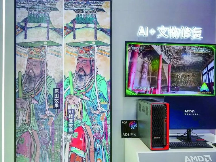 2024年11月5日,第七届进博会技术装备展区AMD展台的“AI+文物修复”技术展示。记者 王益亮 摄/新华社