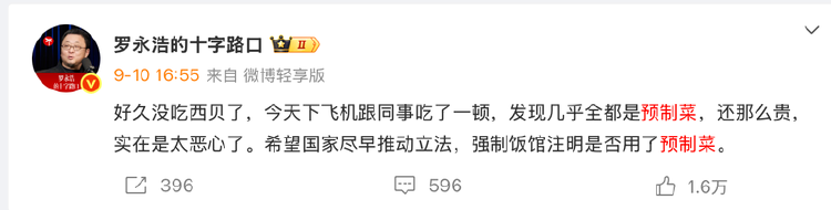 9月10日,罗永浩在微博上对西贝的吐槽,像一颗石子投入湖面,瞬间激起千万网友的共鸣。这场关于“餐厅该不该用预制菜”的争论,不仅让西贝深陷舆论漩涡,更把藏在我们餐桌背后的预制菜行业,推到了聚光灯下。