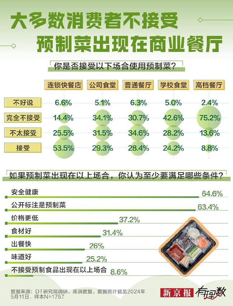“早上赶时间,会买预制包子当早餐;但周末带家人下馆子,肯定不想吃预制菜。”在北京上班的王女士说出了很多人的心声。预制菜到底能不能被接受?通过数据调研我们发现,不同场景下,消费者的态度截然不同。