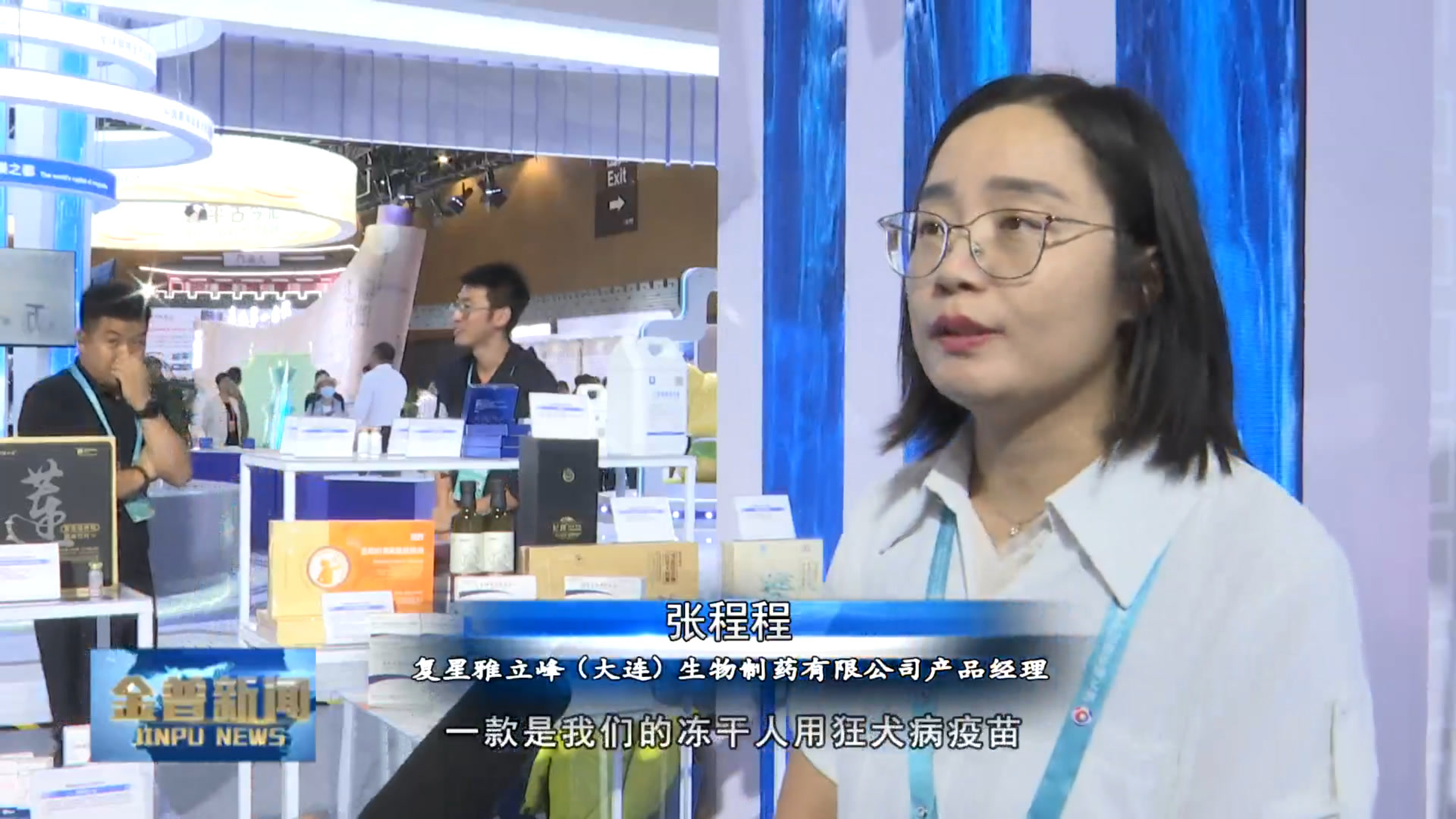 复星雅立峰(大连)生物制药有限公司产品经理张程程(这次我们主要带了两款产品来,一款是我们的冻干人用狂犬病疫苗,是我们去年刚上市新的产品,是国内比较领先的技术。第二个就是我们的流感疫苗,流感疫苗到现在已经在市场上卖了20年了,市场反馈特别好。)