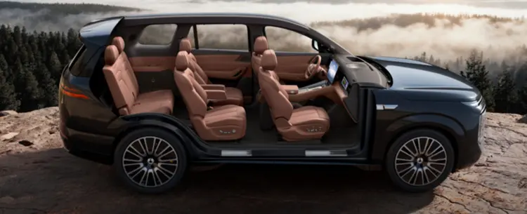 新车定位六座大型SUV,在9月26日开启预售,有望在10月份正式来袭。新车的车长达到5.2m,尺寸上非常可观,采用2+2+2布局,第二排座椅配置也很豪华。新车将搭载2.0T三电机插混系统,并且也提供无人机舱的版本。