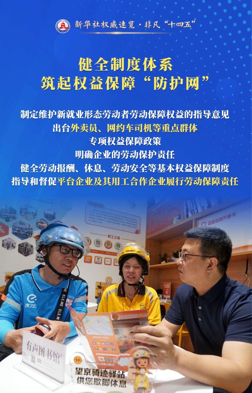 近年来,外卖小哥、网约司机等新就业群体规模不断扩大,已成为我国经济社会发展不可或缺的重要力量。新就业群体的权益如何保障?在26日举行的“高质量完成‘十四五’规划”发布会上,人力资源和社会保障部用三个“关键词”作出回答。跟随海报一起来看看。