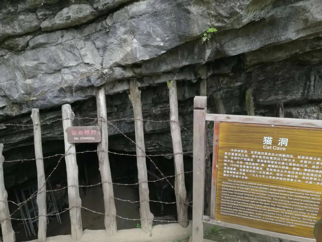 与这些冠冕堂皇的标语形成鲜明对比的是一个隐蔽的岩洞,称为“猫洞”,是军统对革命志士残酷刑讯、秘密杀害之处。这个洞穴潮湿黑暗且非常隐蔽,即使受刑者在洞中发出撕心裂肺的喊叫,外面的人也丝毫听不到。