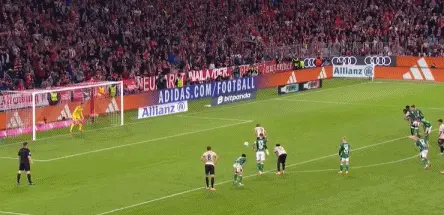 第43分钟,凯恩禁区内被弗里德尔放倒,裁判果断判罚点球。第45分钟,凯恩操刀命中,拜仁扩大战果,2-0!据统计,凯恩在德甲连续罚进18个点球。