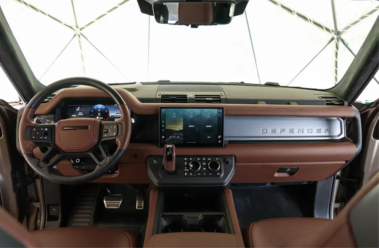 得益于6D智能动态底盘,没有物理防倾杆,却能通过液压互联阻尼器和空气悬架精准控制车身姿态,这点在后来的越野驾驶中,感受和普通版的路虎卫士直接拉开了距离。