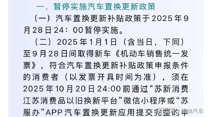 今年下半年开始,还有更多的消息不断得到确认。比如,6月时,12座城市暂停了汽车以旧换新补贴,后续又给到了政策更新。比如,9月28日,江苏省调整汽车以旧换新政策。同期,宁波也调整了以旧换新政策。