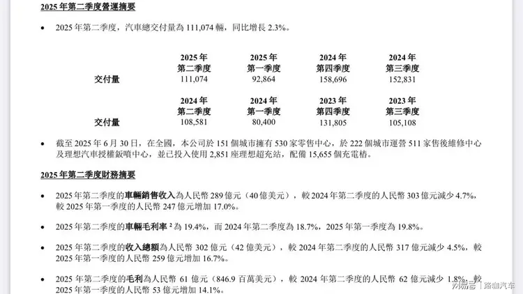 表现最好的是理想汽车,第一季度营收259亿元人民币,净利润6.47亿元,第二季度营收302亿元,净利润11亿元。2个季度叠加下有着近18亿元的利润,交付量为203938辆。进入2025年,理想汽车的成交均价有所下滑,但仍在26万元以上。