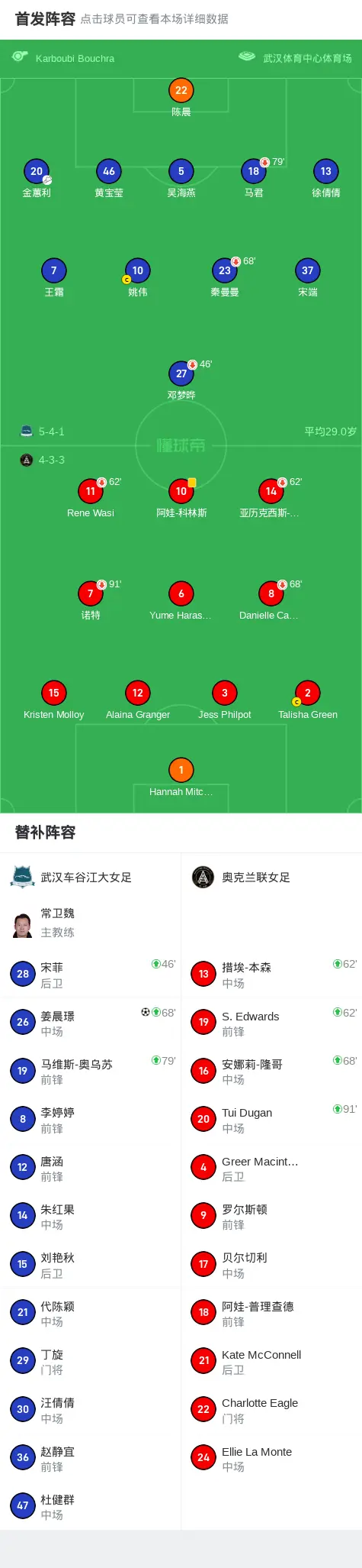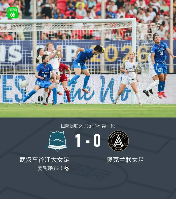在国际足联女子冠军杯第一轮的比赛中,武汉车谷江大女足与奥克兰联女足展开较量。下半场尾声阶段金蕙利助攻姜晨璟绝杀。最终武汉女足1-0战胜奥克兰联女足,下一轮将客战非洲冠军。