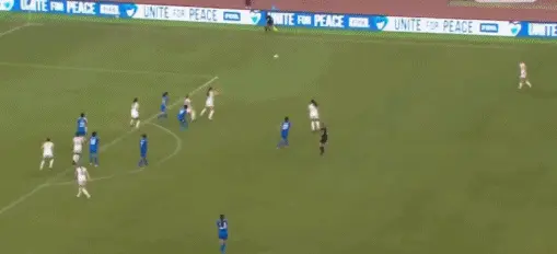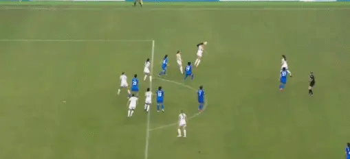 第39分钟,阿娃-柯林斯的传中球直奔球门,球打在顶网上