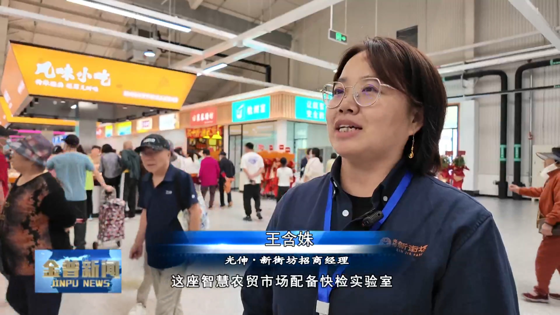 光伸·新街坊招商经理王含姝(这座智慧农贸市场配备快检实验室、产地溯源系统与智能电子秤三重保障体系,市民通过扫描溯源码即可查看食材产地、检测报告等全链条信息,智能设备则从源头上杜绝计量偏差,为“菜篮子安全”筑牢防线。)