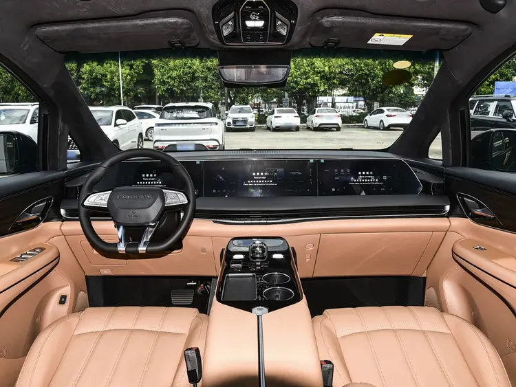 进入车内,新车内饰采用了黑棕双拼配色,结合大面积的软质材料包裹,整体的豪华感有着提升,中控台还配备有12.3英寸液晶仪表+16.2英寸中控屏+12.3英寸副驾屏,搭载腾讯TAI 4.0系统,以及高通骁龙8155芯片支持四音区语音交互与手机投屏功能,整体的科技感表现很出色,座椅方面,新车的二排航空座椅支持12向电动调节含气动按摩,横向滑动180mm,乘坐舒适感出色,而且前排双层隔音玻璃+ANC主动降噪,让车内更加安静。