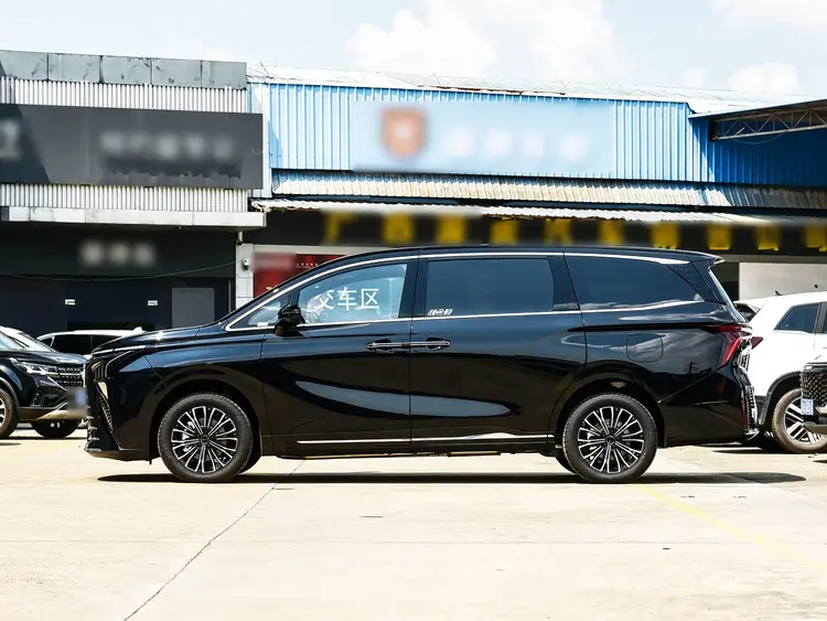 再来看新车的车身侧面部分,5230mm车长采用短前悬+长轴距设计。侧窗镀铬饰条与18/19英寸轮毂形成视觉延伸线,C柱隐私玻璃营造悬浮式车顶效果。双侧电动滑门开口高度1.2米,配备防夹功能,老人儿童上下车便利性优于同级。实测第三排头部空间1020mm,中间过道宽度200mm,魁梧乘客可轻松进出。车身尺寸方面,新车的长宽高分别为5230/1920/1820毫米,轴距为3018毫米,