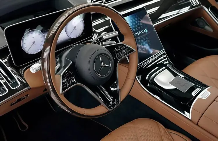 整个侧面最大的看点就是C柱上的24K金徽章环饰,据悉它的灵感来自V12发动机气缸排列!所以即便是细微处的改变也能彰显出这款车高贵的身份。新车尺寸不变与目前的S 680完全一致。至于侧面的大体结构也都保持了不变。