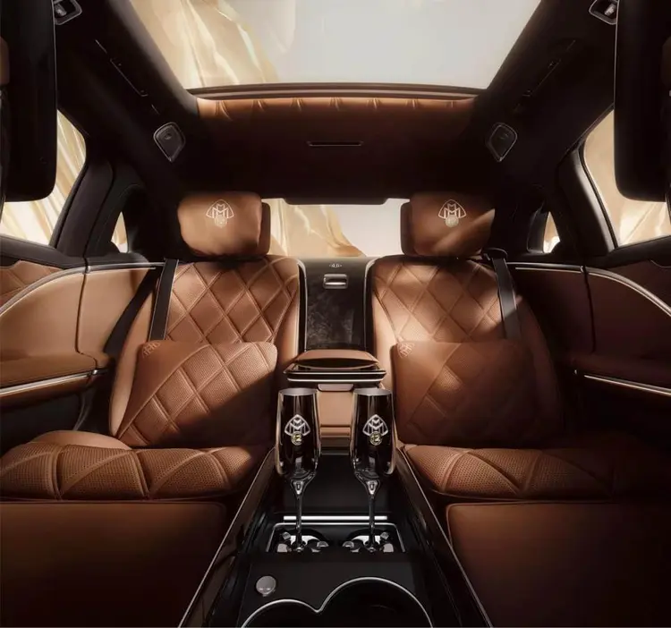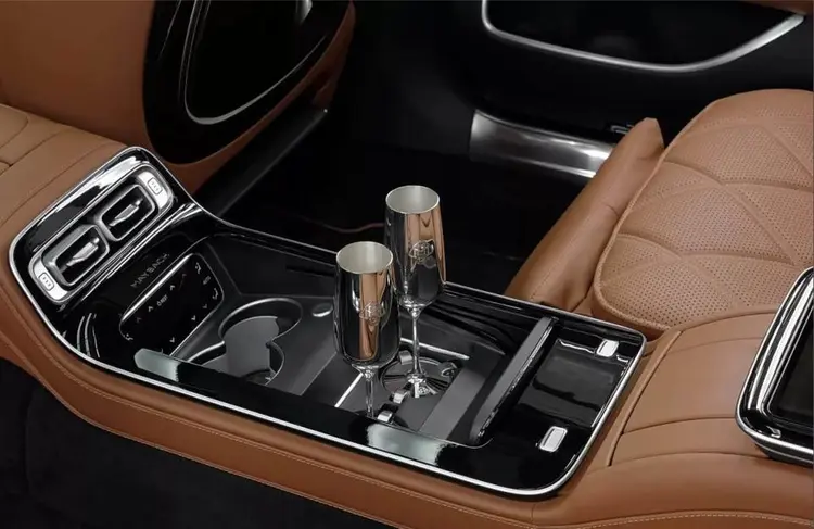 而后排是经典的双座设计,材料与前排同步。同时还配备了定制版的Robbe & Berking镀银香槟杯,马鞍棕色边缘后备厢垫,连钥匙圈都是特制版本。至于配置,常规配置小编就不介绍了,但像电动后车门、主动道路噪音补偿、后桥转向、E-ACTIVE BODY CONTROL主动悬架也都成为标配。