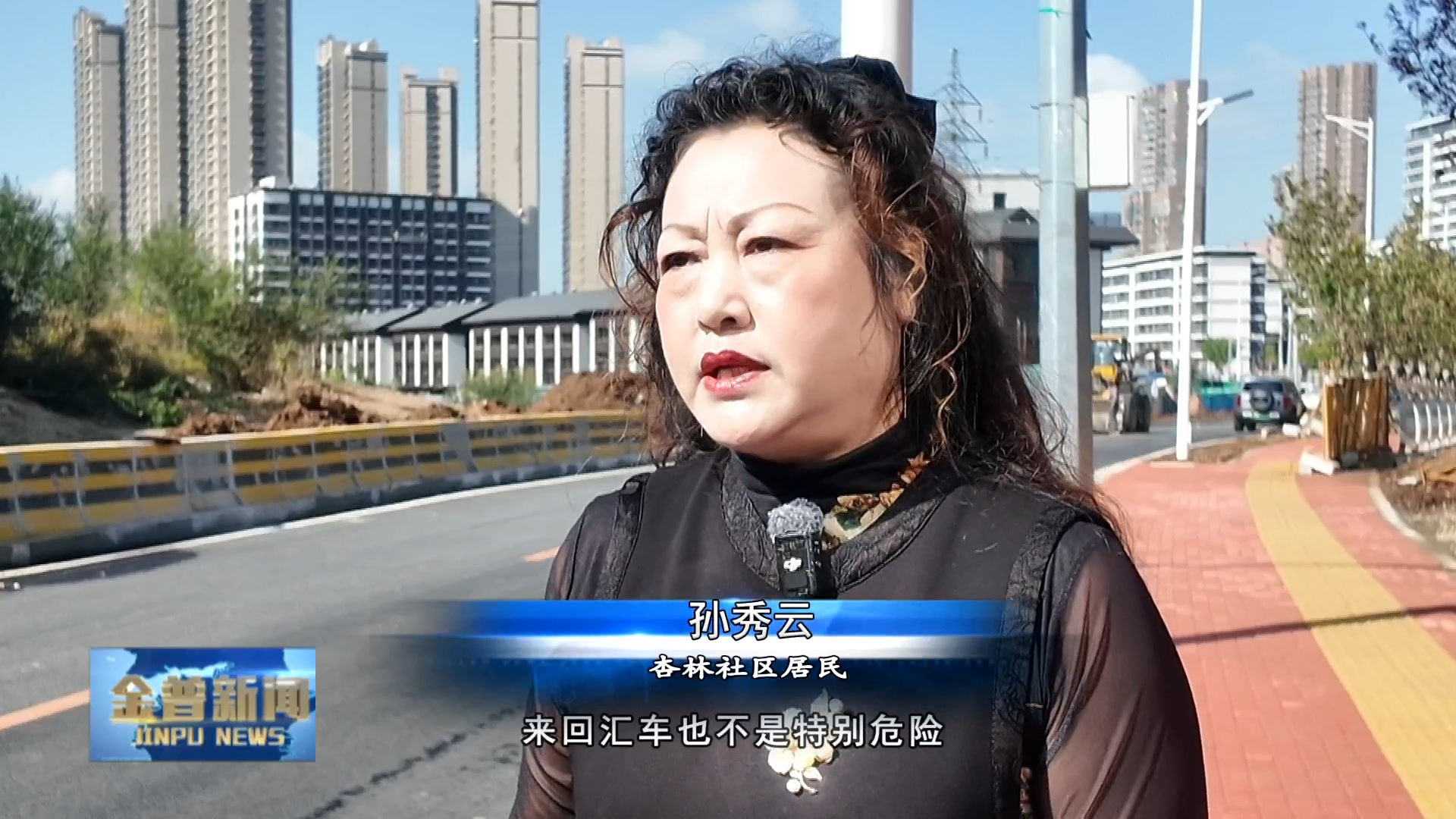 杏林社区居民孙秀云(改善以后,这条路放宽了,来回汇车也不是特别危险,并且还有信号灯,那么老百姓的出行,茶余饭后的遛弯都特别的方便,它是来回出行一个特别好的体验,对于学生来说,也有极大的安全保障。)
