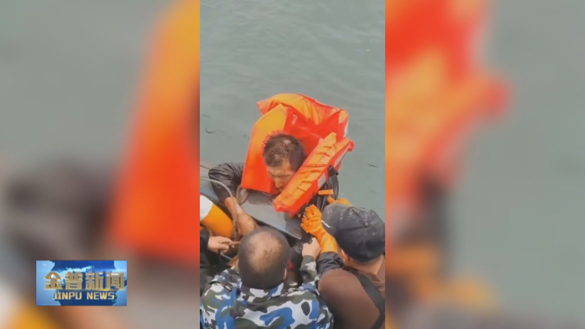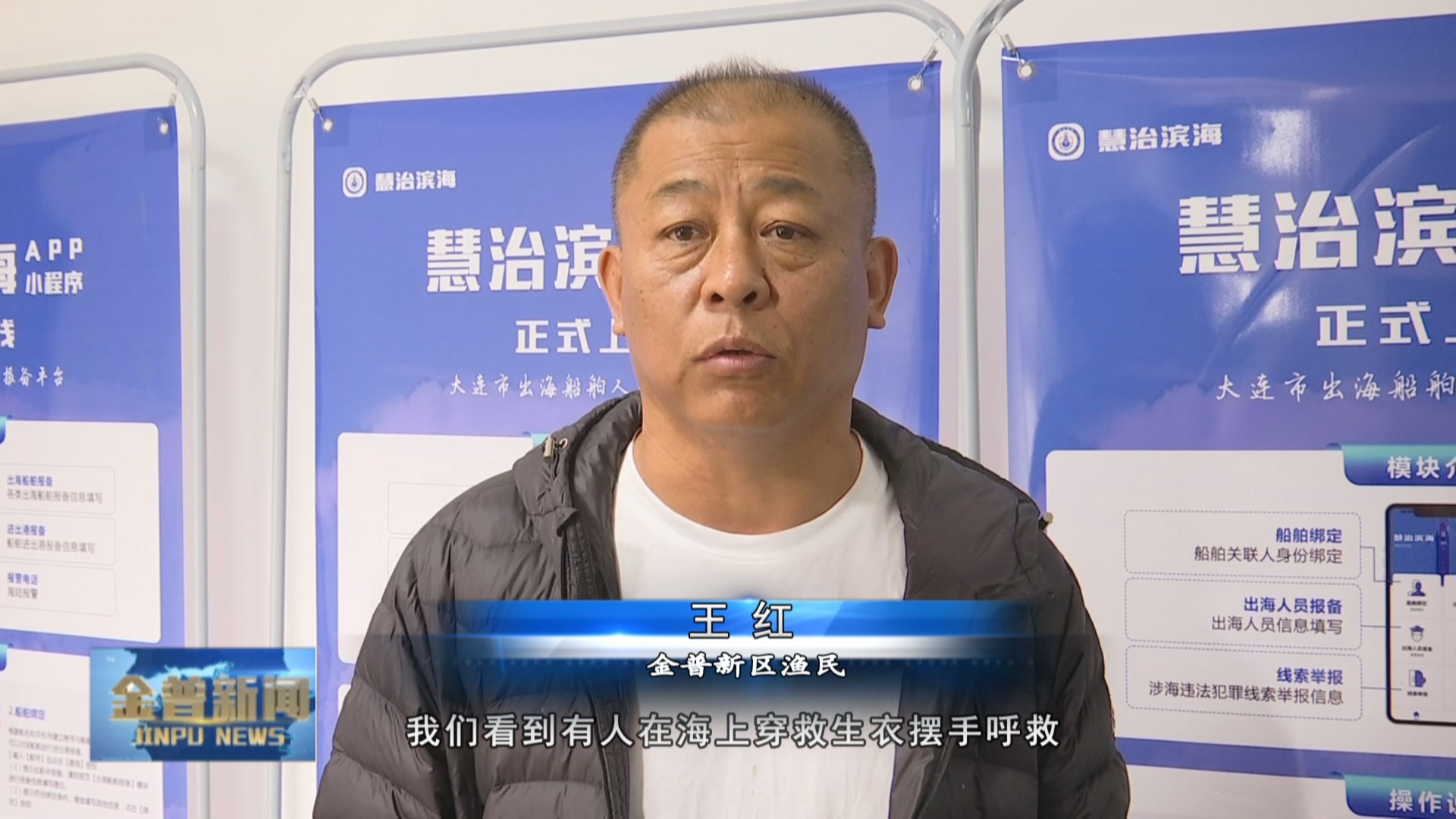 金普新区渔民王红(我们看到有人在海上穿救生衣摆手呼救,我们第一时间就过去了,过去我们船员就撇救生圈,给他们救上来。搁谁看到这种情况都得帮助,都得施救。)