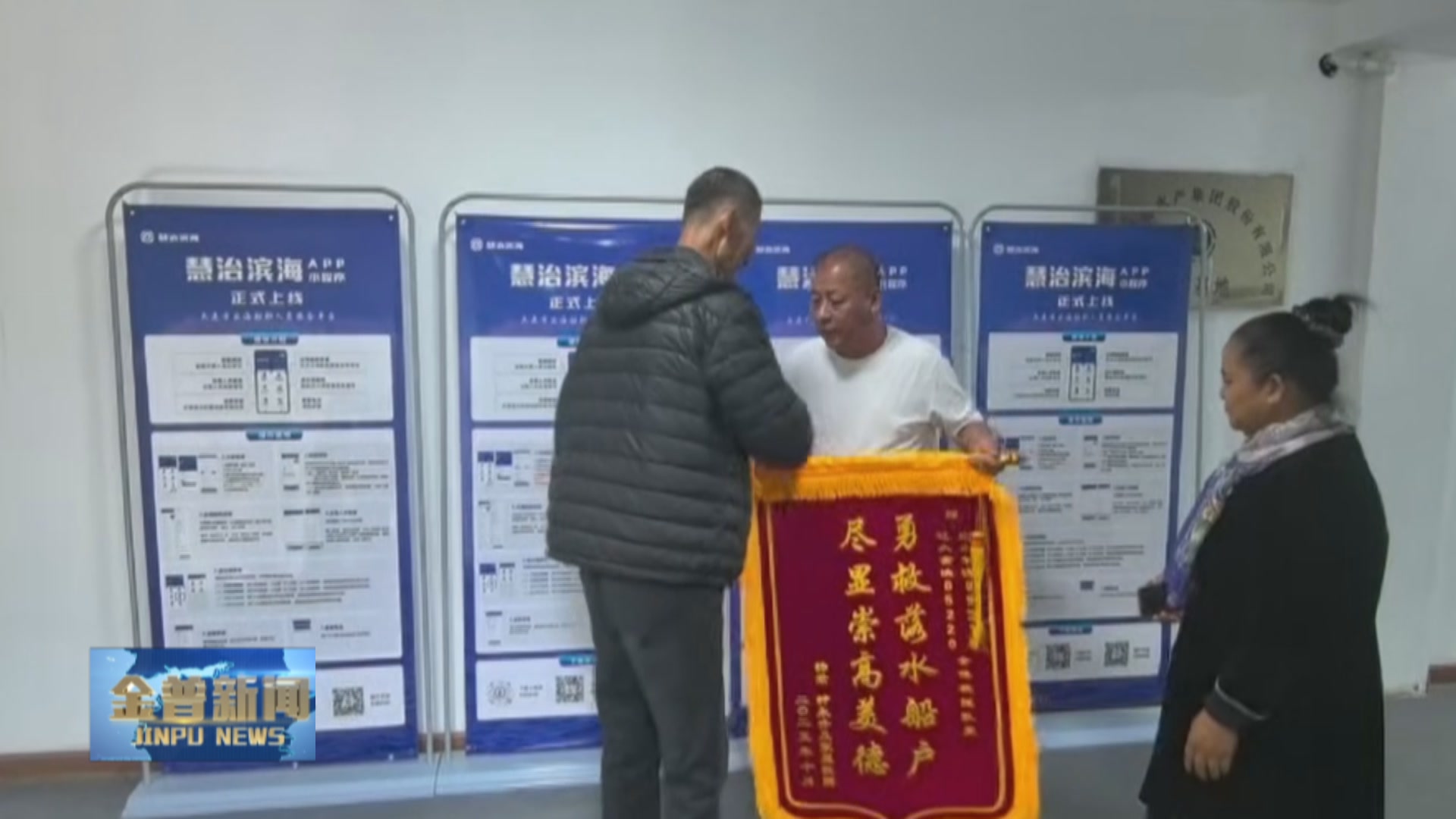 获救后的渔民为见义勇为的王红送去锦旗,感谢他们在关键时刻伸出的援助之手。