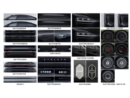 同时在轮毂样式上,新款享界S9新增了享界S9T上的多辐星炫轮毂,而且从工信部数据我们可以看到,新款享界S9还会与享界S9T一样,提供黑曜套件可选,全车外观各方面黑化处理并搭配红色刹车卡钳,气质更年轻。还新增了车外麦克风,可在车外语音呼叫小艺,也可以将车内声音传到车外,起到很好的提示作用。